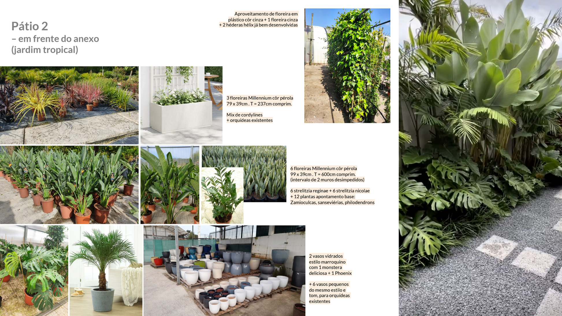 → Utilizamos as espécies: strelitzia nicolae, strelitzia reginae, alocasia, monstera, phoenix, e reaproveitamos outras espécies de que a casa já dispunha.